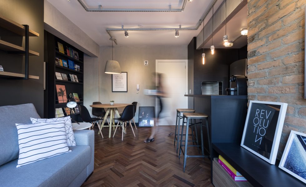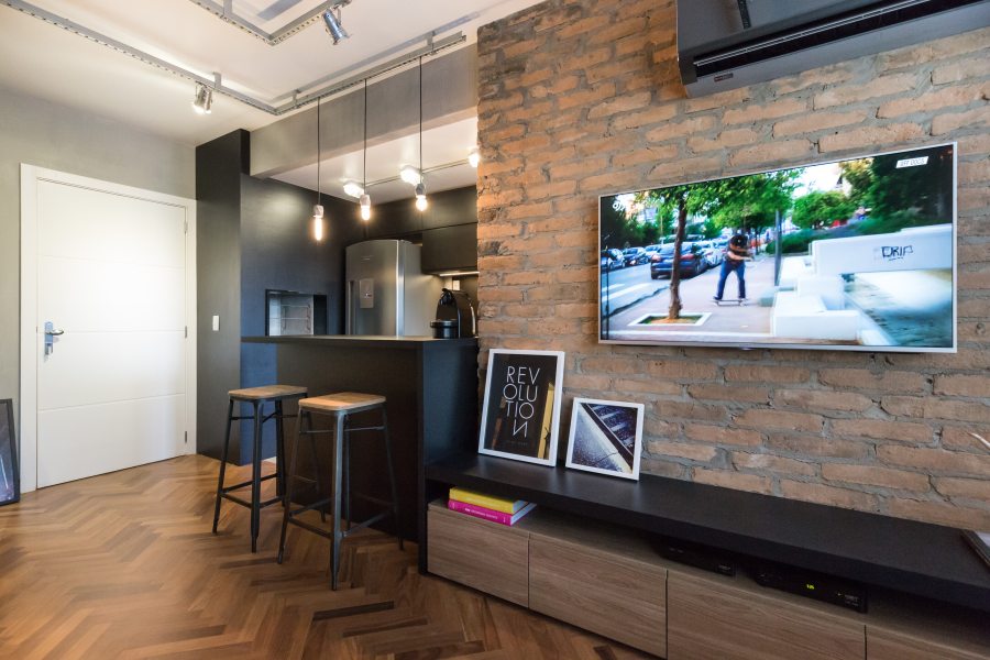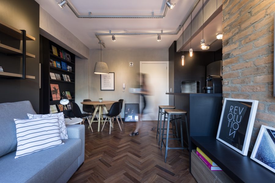 O compacto apartamento de 59m² foi projetado pela K+S Arquitetos Associados para um jovem que estava de saída da casa dos pais.