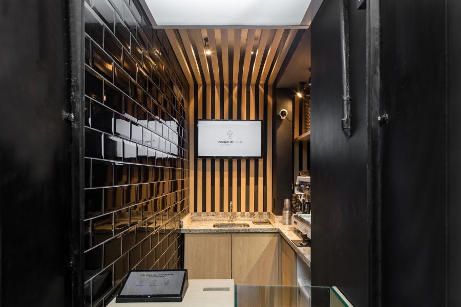 A pausa para o cafezinho fica ainda melhor com um ambiente desses. Nessa cafeteria de Curitiba, projetada pelo Studio Boscardin.Corsi, o conceito do ambiente segue ao do carro-chefe: simples e funcional, como o café. Os tons neutros e as linhas retas ajudam a compor o cenário, que ganha um toque industrial com os azulejos de metrô pretos.