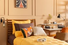 O projeto também contempla a transição para a adolescência, com escrivaninhas ergonômicas, soluções de armazenamento e opções como beliches e sofás-cama. O conjunto reforça a ideia de mobiliário adaptável, com estrutura preparada para acompanhar diferentes etapas da vida dentro do mesmo espaço.