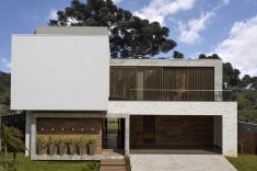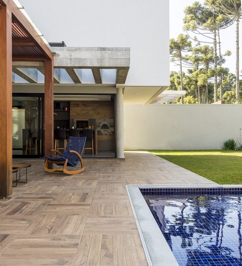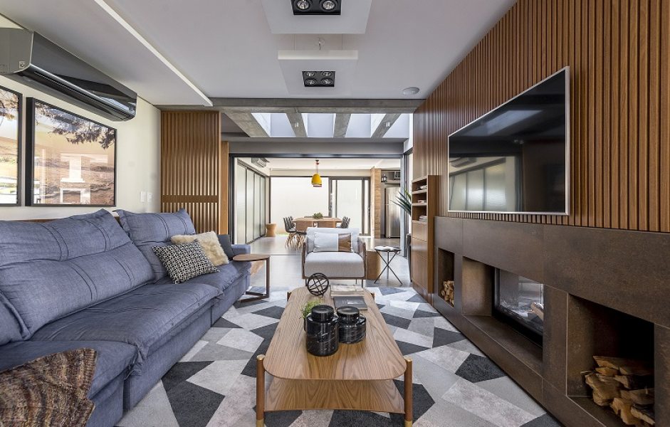 Nessa residência de 350 m², executada pela construtora Monreal em parceria com as arquitetas Vanessa Faller e Maíra Queiroz, do Espaço do Traço Arquitetura, o destaque vai para ao santuário de araucárias que a rodeiam.