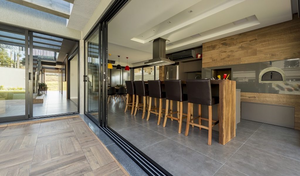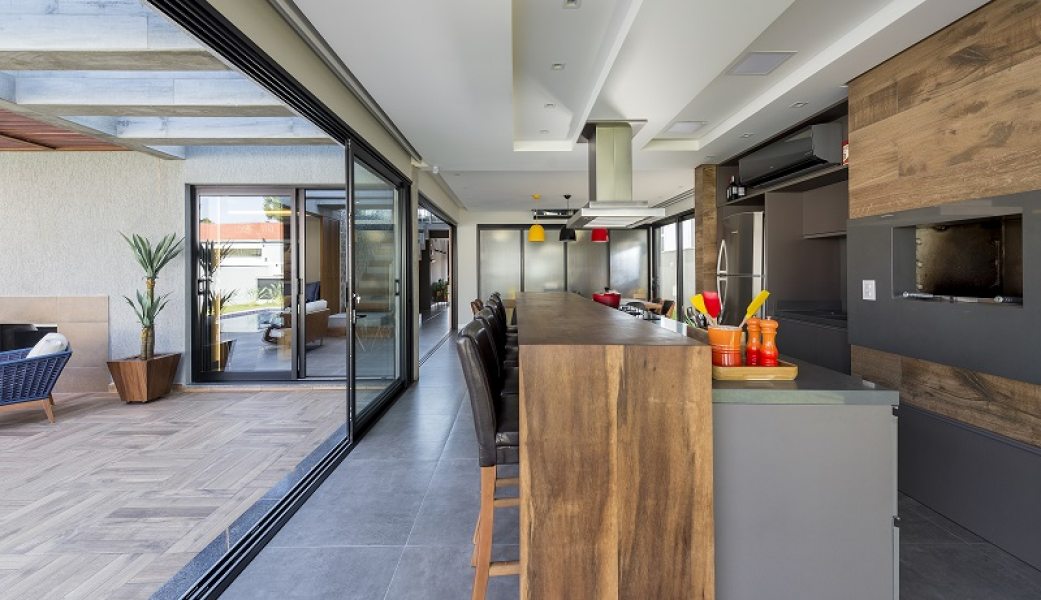 No décor, prevalece a praticidade com materiais de fácil manutenção e espaços amplos.