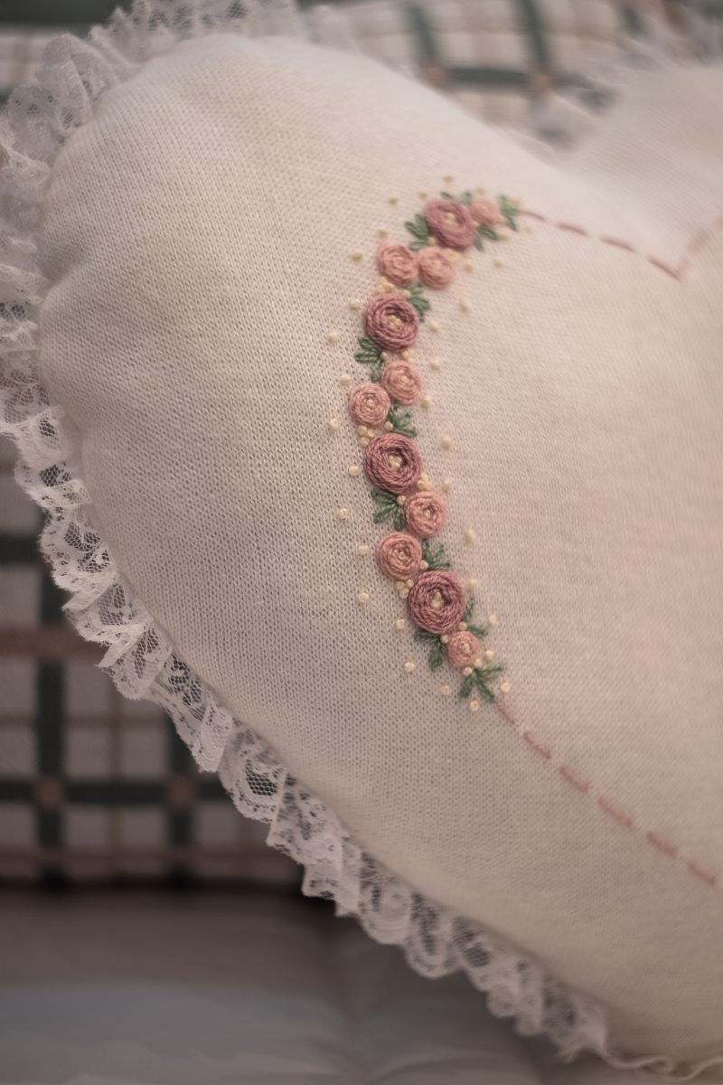 Bordado feito à mão em ponto rococó pela Sonhos de Ninar. A personalização de enxovais e acabamento manual é o diferencial da marca há 25 anos. Foto: Marcelo Stammer/Divulgação