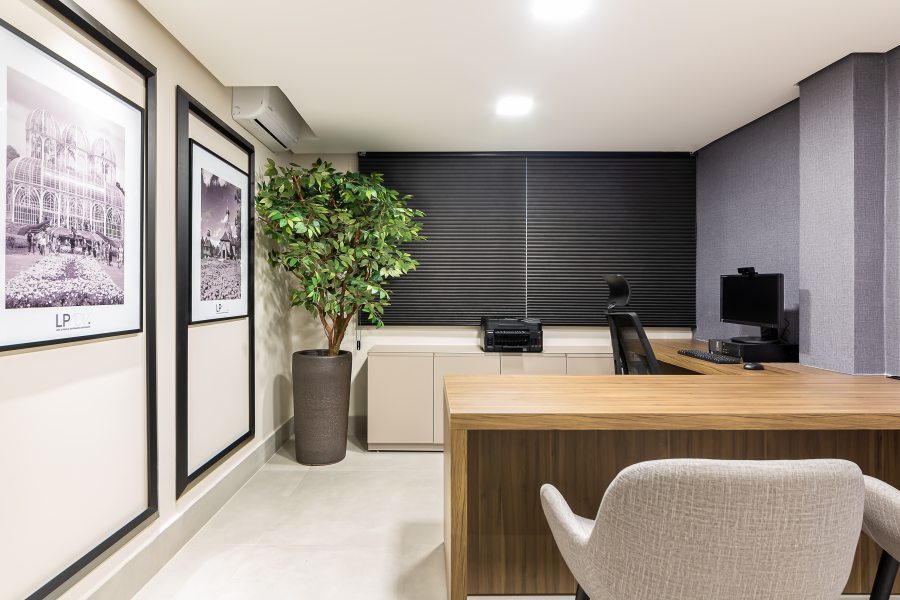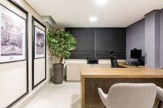 A área do Direito geralmente é associada a conceitos de tradição, seriedade e rigidez. Quando se trata de garantir o bem-estar de clientes e trabalhadores, todavia, replicar estes adjetivos por meio do décor nem sempre é a melhor alternativa. “Os sócios proprietários do escritório buscavam o bem estar, tanto dos clientes quanto dos funcionários, para que o ambiente de trabalho fosse um lugar elegante, porém descontraído.” – relembra a arquiteta Naiara Ceccon, responsável pelo projeto deste escritório de advocacia de 500m² na Rua XV de Novembro, em Curitiba.