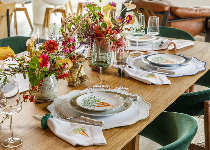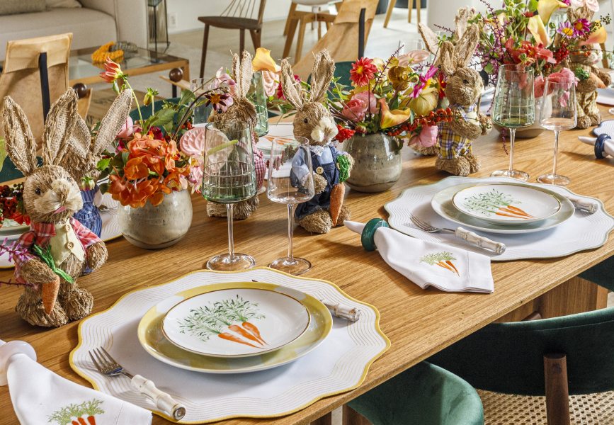 Já os acessórios temáticos incluem coelhos, feitos em cerâmica ou juta, que podem ser usados como decoração ou opções de presente. Da mesma forma, os guardanapos bordados a mão trazem as clássicas cenouras ao cenário festivo, ao passo que os jogos americanos de tecido impermeável e os porta-guardanapos com pedras naturais, ambos nas cores da nova coleção, ajudam a completar a atmosfera festiva.
