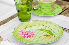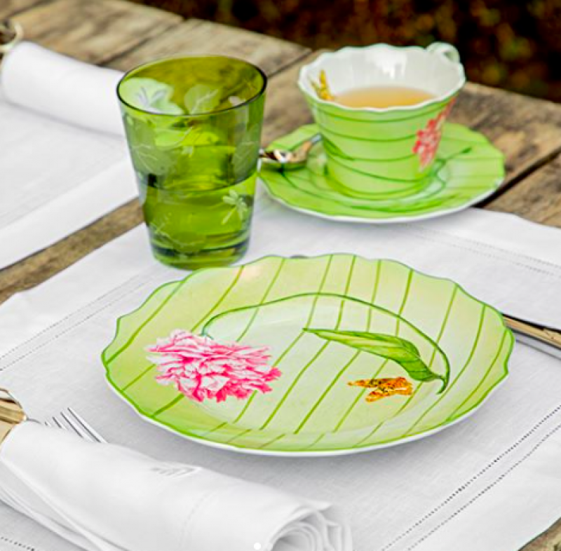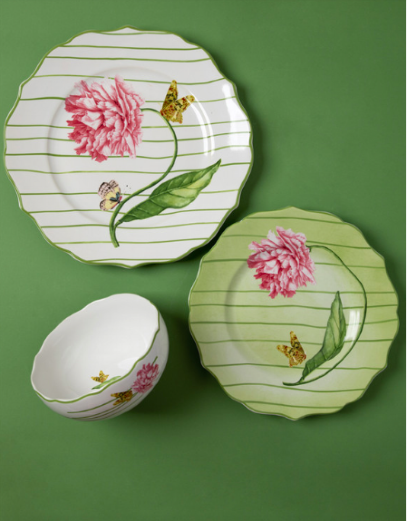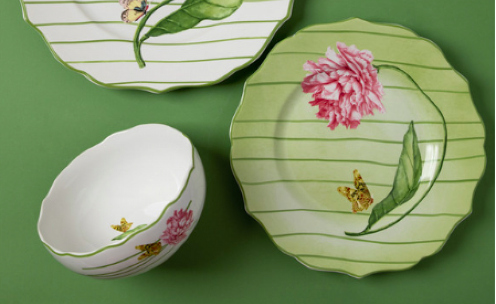 O design da nova linha de louças destaca a sutileza dos jardins com cores vivas, em tons predominantes de verde, rosa e amarelo. Os desenhos unem a delicadeza da natureza brasileira com a modernidade de traços soltos em listras, trazendo leveza e elegância à coleção. Todas as peças foram criadas em porcelana, com estilo próprio e desenhos autorais. Cada detalhe foi pensado exclusivamente pela artista para vestir a mesa com sofisticação em qualquer ocasião, do café ao jantar.
