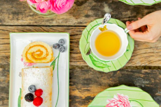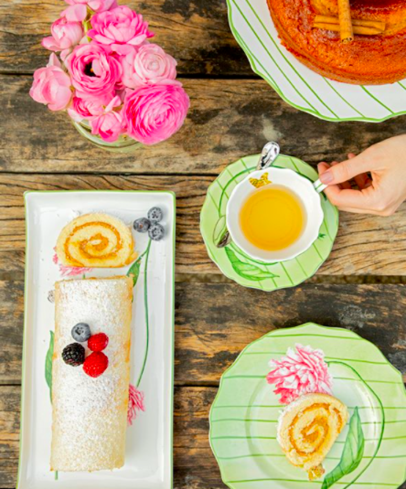Além do prato raso, prato de sobremesa, bowl, xícara de chá e xícara de café, a coleção vem acompanhada de boleira e bandeja, para complementar a produção e deixar a mesa com uma atmosfera leve e elegante.