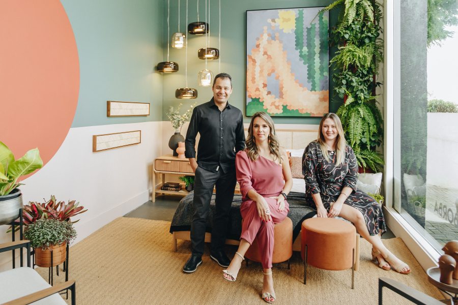 Acima: empresário Rogério Lemos, da Masotti Curitiba, e as profissionais Patrícia Borba e Lya Marty