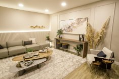 Living - Tendo como base a arquitetura de interiores atemporal, clean e elegante, o living foi projetado pelas arquitetas Erika Natacci e Tatiane Ditadi, com designer de interiores, Caroline Schmidt. "O conceito é de um espaço amplo, convidativo e acolhedor”, relata Erilka. Segundo as profissionais, esse acolhimento passará por toda a residência. “A ideia é que o espaço seja integrado aos demais ambientes da casa, criando esse local de socialização", complementa Tatiane.