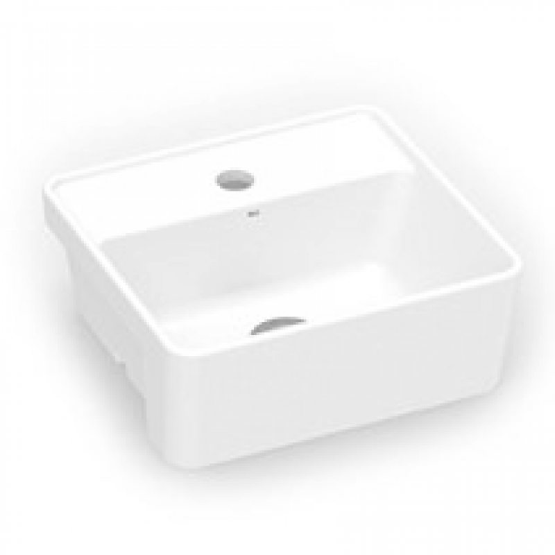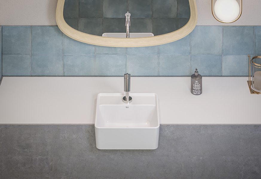 Cuba de semiencaixe da linha Optica (360 x 340 mm*) na cor branco brilho | Foto: Divulgação Roca
