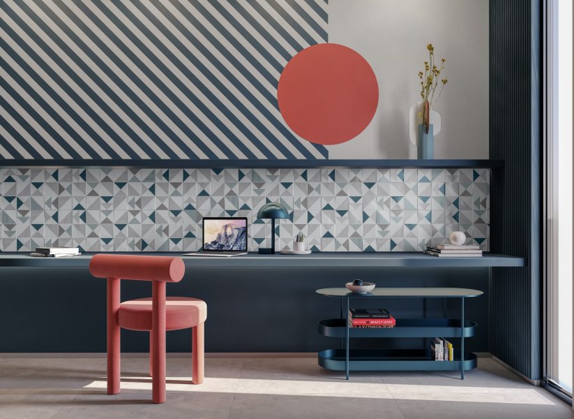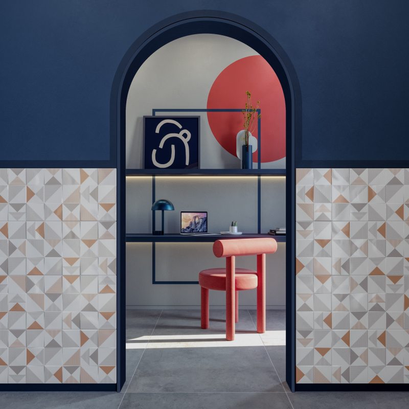 As formas geométricas são atemporais e transitam pelos mais diferentes estilos, padrões e texturas. Descontraídas, seu uso dispensa regras e formalidades e podem ser exploradas de forma quase ilimitada em grandes planos ou pequenos detalhes, valorizando ainda mais os espaços e quebrando a monotonia. Seguindo esta ideia, os revestimentos da linha Artline revelam formas geométricas triangulares em três tonalidades sobre um relevo modular, todas mescladas com branco e cinza.