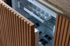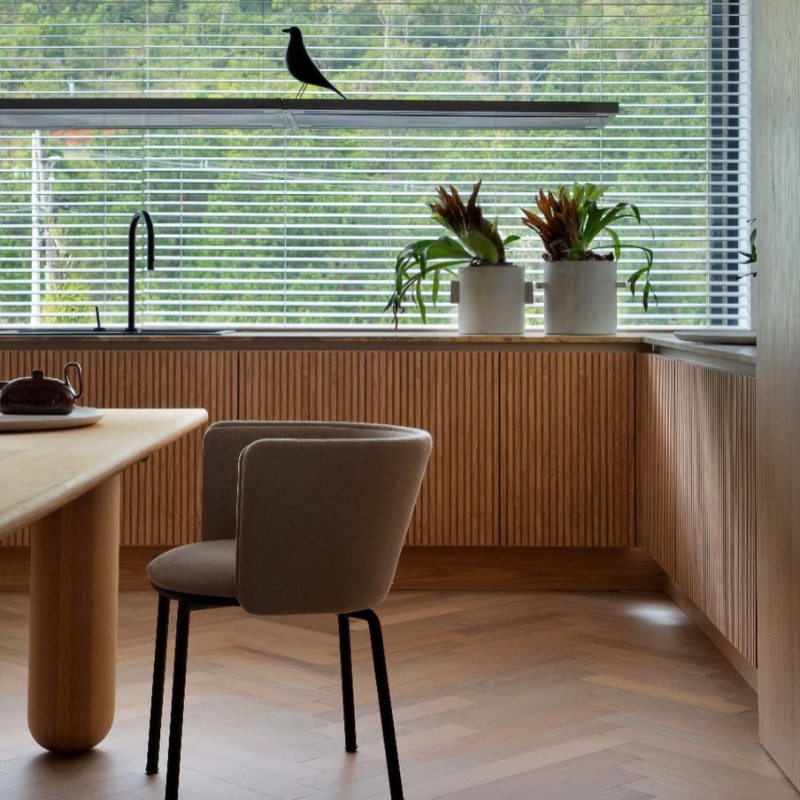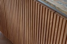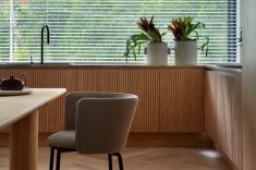 Onde: Curitiba • 30 de Setembro - 2021 | Fotos Denilson MachadoNova linha de mobiliário fixo é composta por relevos de madeira que apostam na simetria e na sensação de continuidade