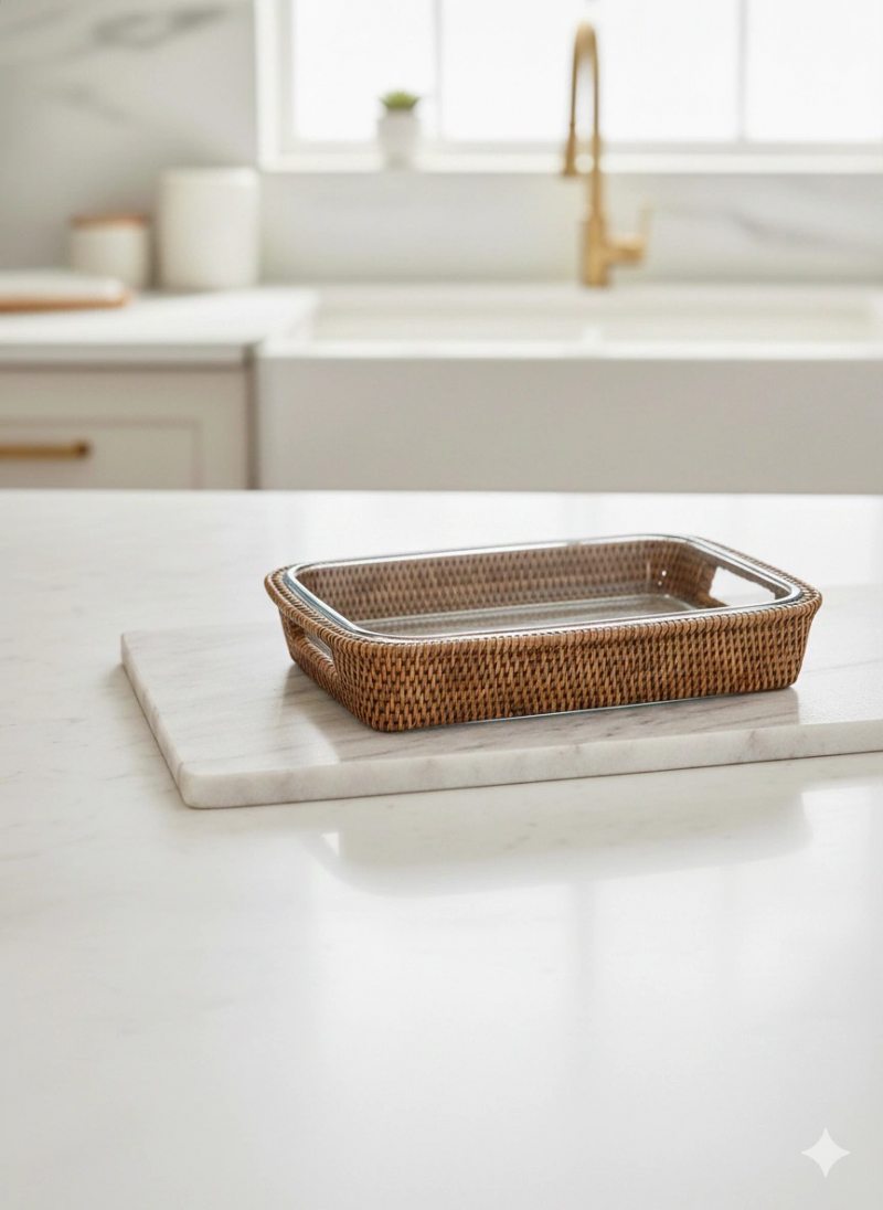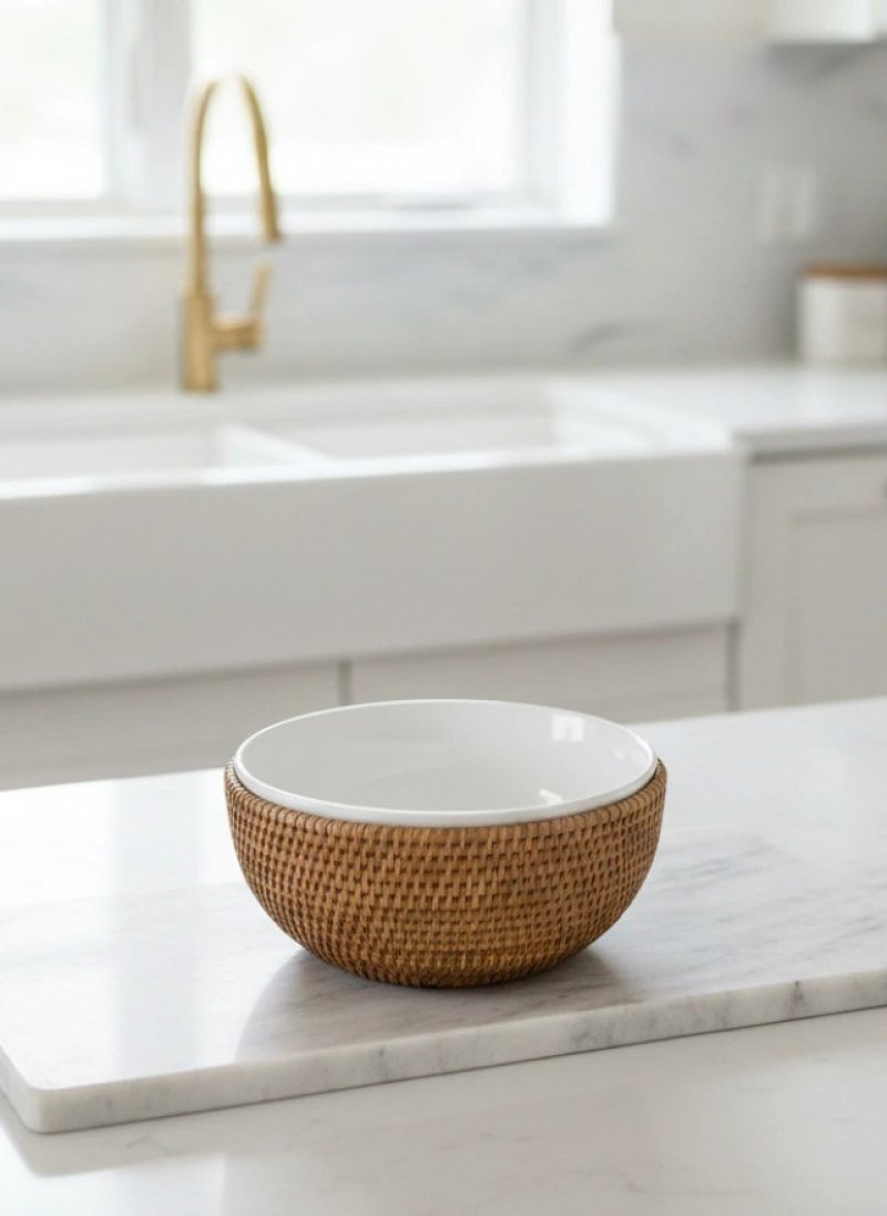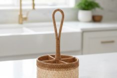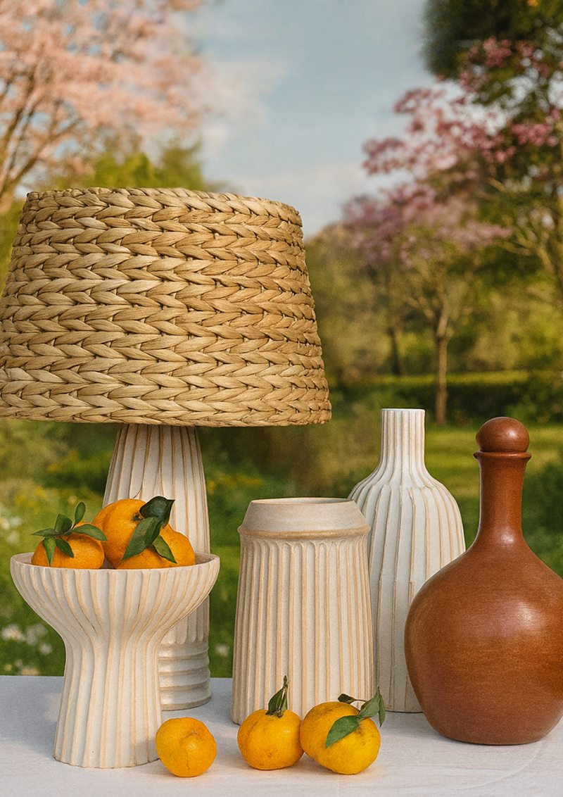 Outro destaque entre os lançamentos é o uso de materiais naturais, com o rattan da marca A Sua Mesa Suas Vontades. Leve, versátil e atemporal, o material aparece em móveis, bandejas, objetos decorativos e itens para a mesa.