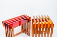 Entre os lançamentos de mobiliário, a By Poli apresenta a Ripa, peça versátil que pode assumir diferentes funções nos ambientes como banco ou mesinha de apoio. Disponível nos formatos quadrado ou retangular, o móvel permite personalização em até 80 cores por meio dos assentos em resina. A base em madeira maciça reforça o caráter natural do desenho e amplia as possibilidades de uso em áreas sociais ou de apoio. Mais informações em www.bypoli.com.br.