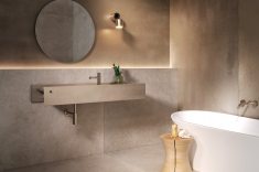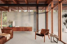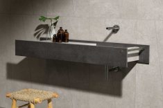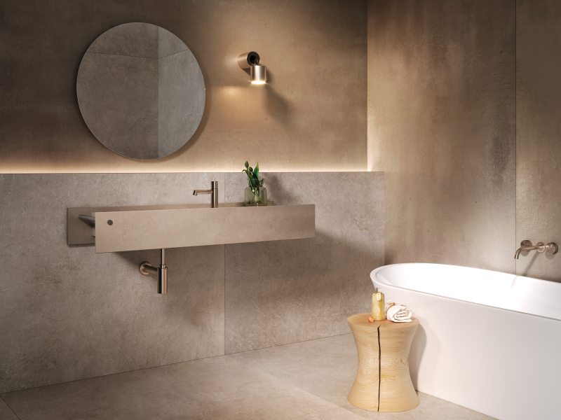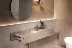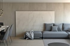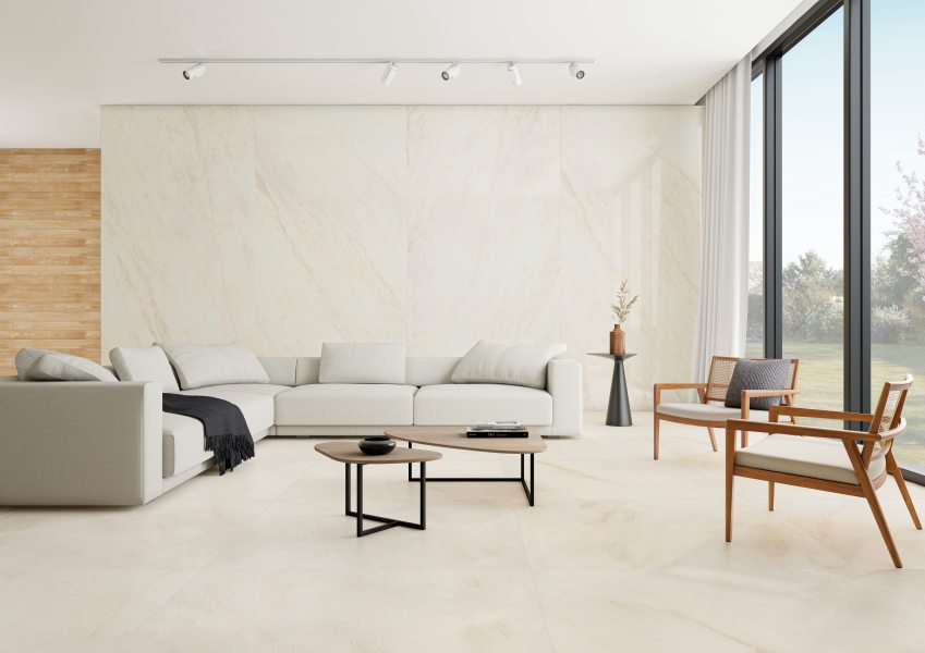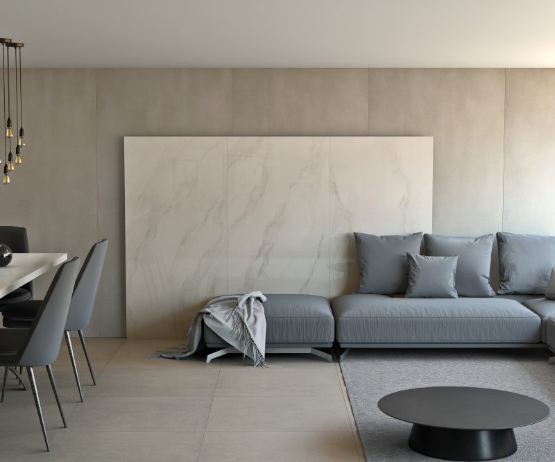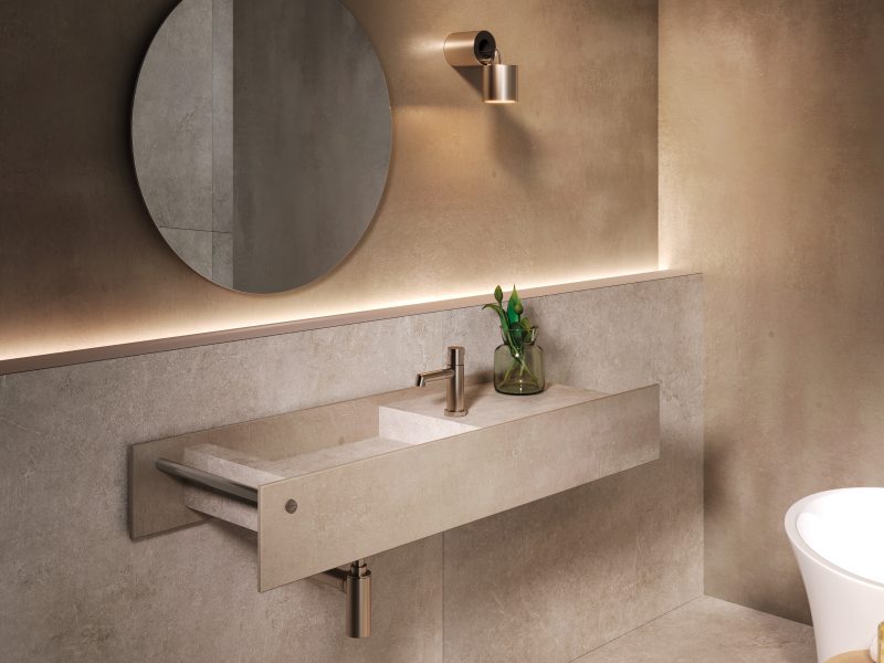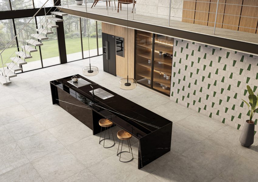 Ainda neste ciclo, a linha de acessórios tem muitas novidades em cores e texturas. Os belos Mármores e Quartzites vêm com novos formatos de lastras (o futuro da arquitetura).