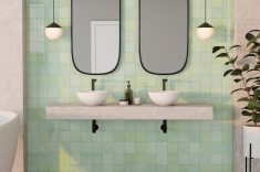 Na Linha Casablanca, por fim, a técnica de azulejaria - tradição da milenar cultura do Marrocos - é traduzida em peças para decorar e personalizar ambientes de toda a casa. Disponível agora na nova cor Menthe (foto abaixo) e no novo acabamento Matte nas cores Nuage e Fume. Veja mais imagens em nossa galeria!