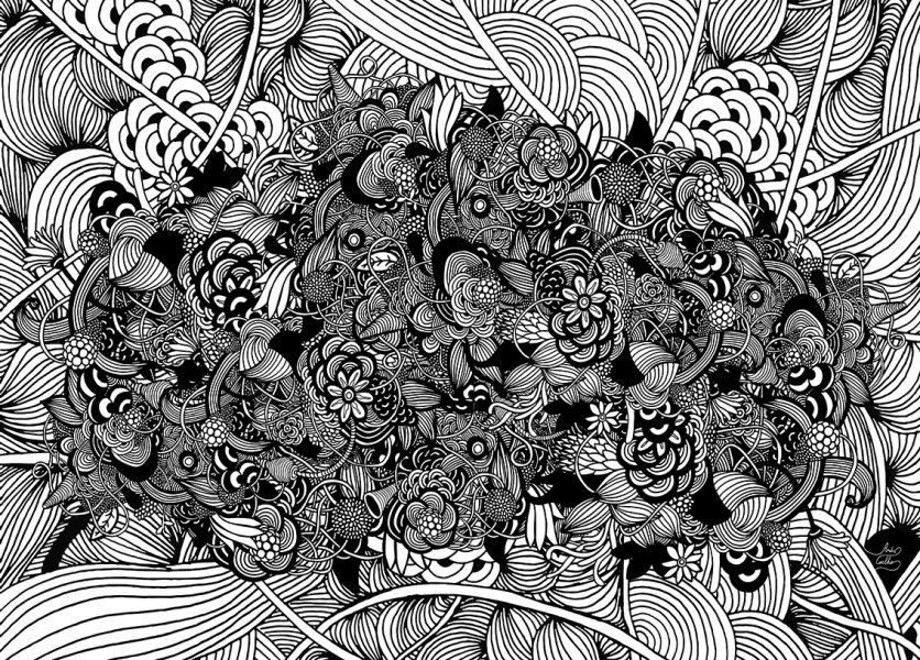 Até consolidar sua carreira artística, ele andou por outras veredas. A mais marcante e duradoura - cerca de sete anos - foi no teatro, como ator. André frequentou o Ateliê de Criação Teatral comandado por Luis Melo e Nena Inoue, o que ampliou largamente sua bagagem artístico-cultural. O desenho, como forma de diálogo consigo e com o mundo, sempre caminhou com André e acabou sendo sua plataforma principal de expressão - para ele, desenhar é quase uma meditação, é estar no aqui-agora. “Sou um artista intuitivo. Comecei a explorar as linhas do meu jardim usando canetas marcadores e canetas nanquim, explorando o preto e o branco. Até que o desenho começou a tomar uma forma humana e criei esse personagem que eu chamo de o homem jardim”.