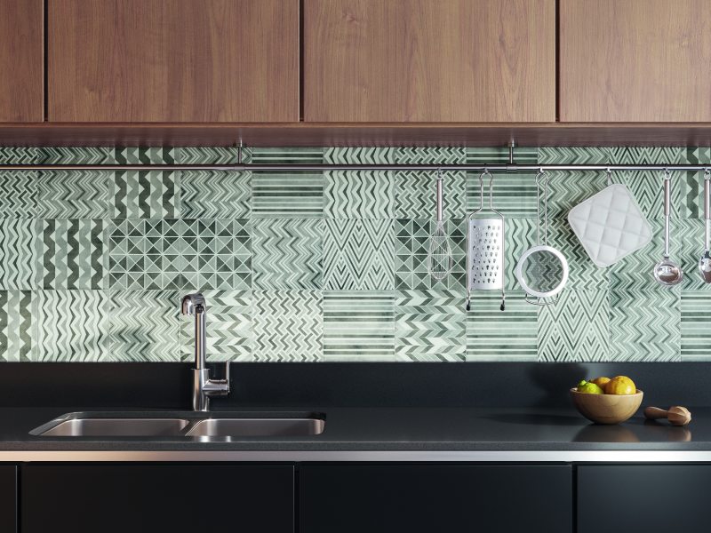 A temática étnica também aparece em seus revestimentos – como visto na linha Tribal (20 x 20 cm), que homenageia a multiculturalidade dos povos africanos. A padronagem produzida pela Incepa confere aos ambientes uma estética particular e cheia de personalidade, com elementos geométricos em tons de cinza. Uma outra forma de explorar o geometrismo é vista na linha Element (21,5 x 21,5 cm), que traduz a atmosfera Folk em padrões de tons terrosos e cores marcantes.
