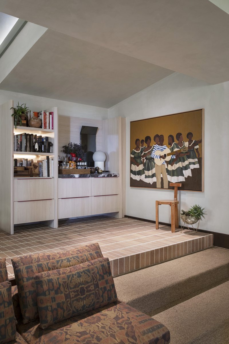 Em 120 metros quadrados, a Todos Arquitetura criou uma casa cheia de significado. Eté, que significa verdadeiro em tupi-guarani, dá nome ao espaço que inclui área social ampla e integrada, cozinha, jantar, escritório e varanda, além de uma suíte completa. A escolha das obras de arte, feita pela curadora Beta Germano, segue o fio condutor da brasilidade artística atual. Wallace Pato – Pintor autodidata que narra histórias dos subúrbios brasileiros - retrata em suas obras cenas características de nosso país, inclusive festividades, crianças nas ruas, cenas carnavalescas, refeições e até funerais. A pintura escolhida para a CASACOR faz referência direta a Heitor dos Prazeres - um dos pioneiros na composição dos sambas e participante da fundação das primeiras escolas de samba do Brasil. Nomes como Élle de Bernardini, Thiago Rocha Pitta, Maria Lira, Tiago Mestre, Davi de Jesus Nascimento e Jacques Douchez também estão presentes nos ambientes da Casa Eté Duratex, preenchendo as paredes com representatividade e força além de resgatar e reconstruir narrativas esquecidas, apagadas ou silenciadas.