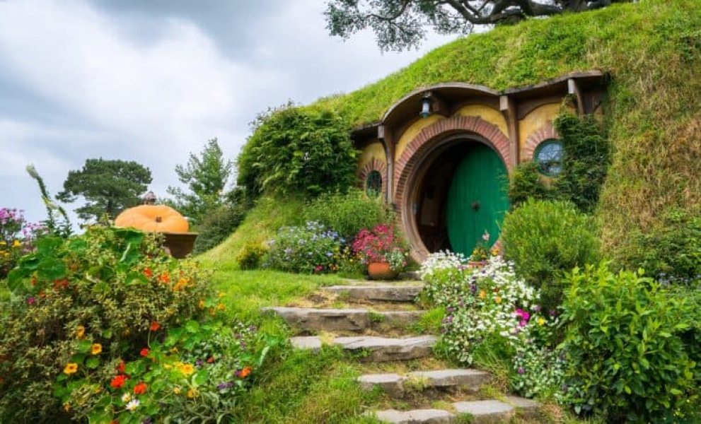 O Senhor dos Anéis - O Condado: A casinha dos hobbits, personagens da trilogia Senhor dos Anéis, tem inspirado construções de casas na vida real. Coberta de grama e com poucas aberturas, expressa o apego ao lar e a vida tranquila dos pequenos moradores.