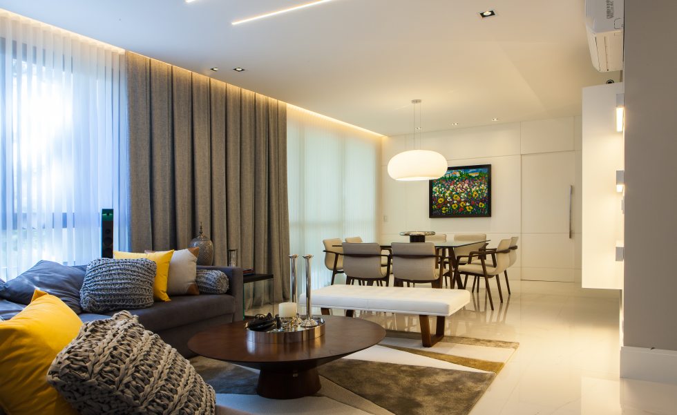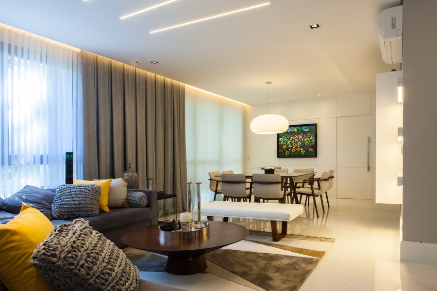Onde: Curitiba • 21 de Janeiro - 2019 | Fotos Dea FylykO projeto da sala de jantar integrada com living explora a iluminação multifuncional