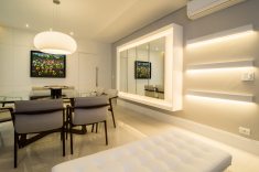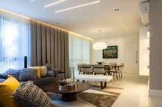 O luminotécnico foi escolhido a dedo na Grey House e permite ao usuário compor cenários variados, conforme a necessidade. “A Grey House consegue acompanhar a evolução do mercado e as principais tendências, sem modismos, adaptando-se às necessidades de cada cliente, proporcionando informações técnicas e auxílio durante a execução da obra”, ressalta a arquiteta.