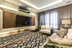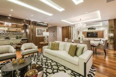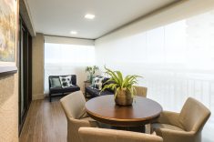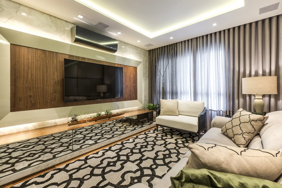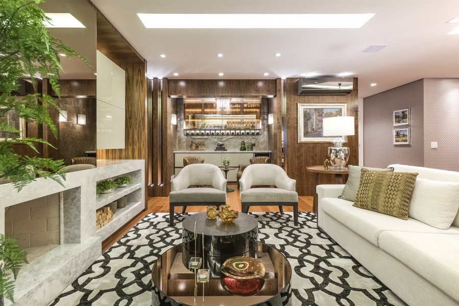 O living amplo permite a passagem da cadeira de rodas do cliente sem sacrificar a beleza dos ambientes.