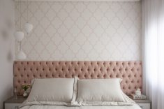 Uma forma prática de atrair os olhares para as paredes é revesti-las com papel. "O mercado conta com uma versatilidade enorme de papeis de parede, dos mais neutros aos mais ousados, para todo estilo de projeto", opinam as profissionais. Para o projeto desse quarto super romântico (foto acima), o modelo geométrico, com um delicado tom de rosa, criou uma "conversa" com a cabeceira em tom parecido.