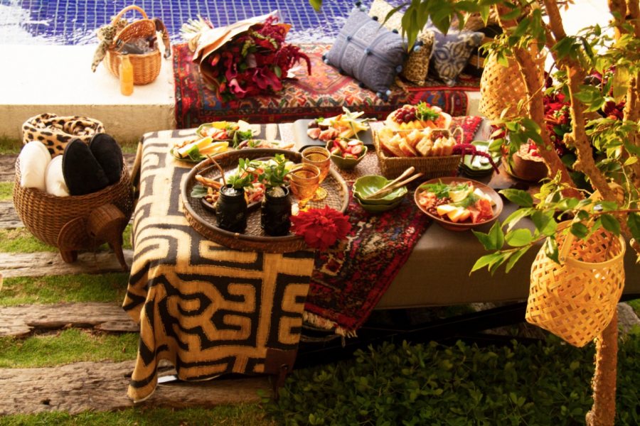 A forma mais antiga de se realizar uma refeição ao ar livre serviu de inspiração para a produção da arquiteta, que idealizou uma celebração com o propósito de trazer à memória lembranças de viagens e momentos especiais: “O que pode ser mais romântico e intimista do que um piquenique a dois? É uma lembrança que agregará ainda mais valor e sentimento à proposta”, explica.