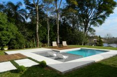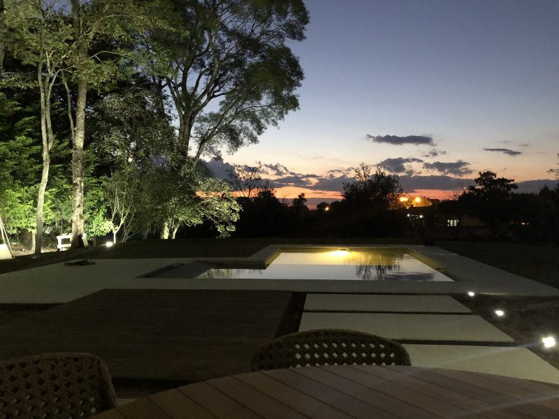 Esta residência no bairro Entre Rios, em Guarapuava, precisava de uma área de lazer externa que atendesse a família de moradores e atuasse como elemento de destaque do paisagismo. A natureza local exuberante e a vista privilegiada do pôr do sol foram os pontos de partida da arquiteta Silvia Schwarz Ducat para o projeto que apostou em um produtos da Desjoyaux Piscinas.