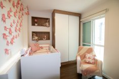 Além disso, o quarto também deve ser planejado com a possibilidade de ser quarto de criança e até mesmo de adolescente. “Costumamos trabalhar com um layout em que o local do berço possa ser o espaço onde será colocada a cama, e onde a cômoda/trocador possa ser substituída por uma escrivaninha. Dessa forma é possível contemplar um armário que vai ser utilizado durante o crescimento da criança, sem precisar ser trocado. A iluminação também já pode ser pensada para ir acompanhando essas mudanças”, completa Ana.