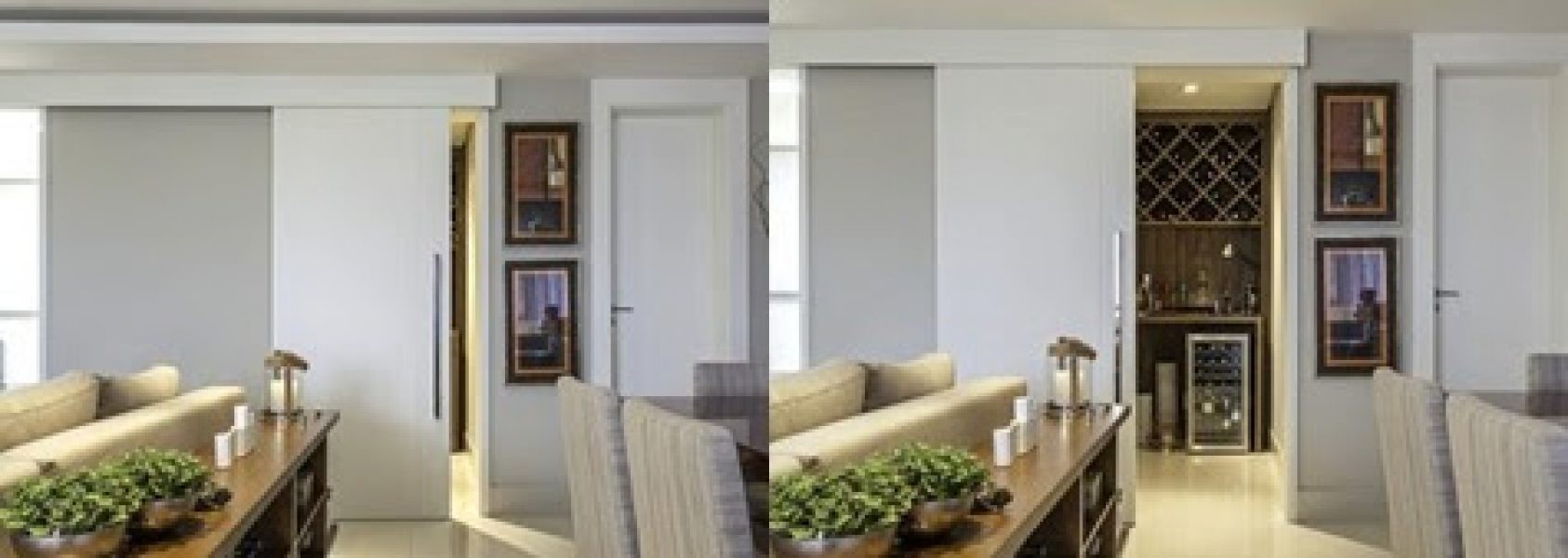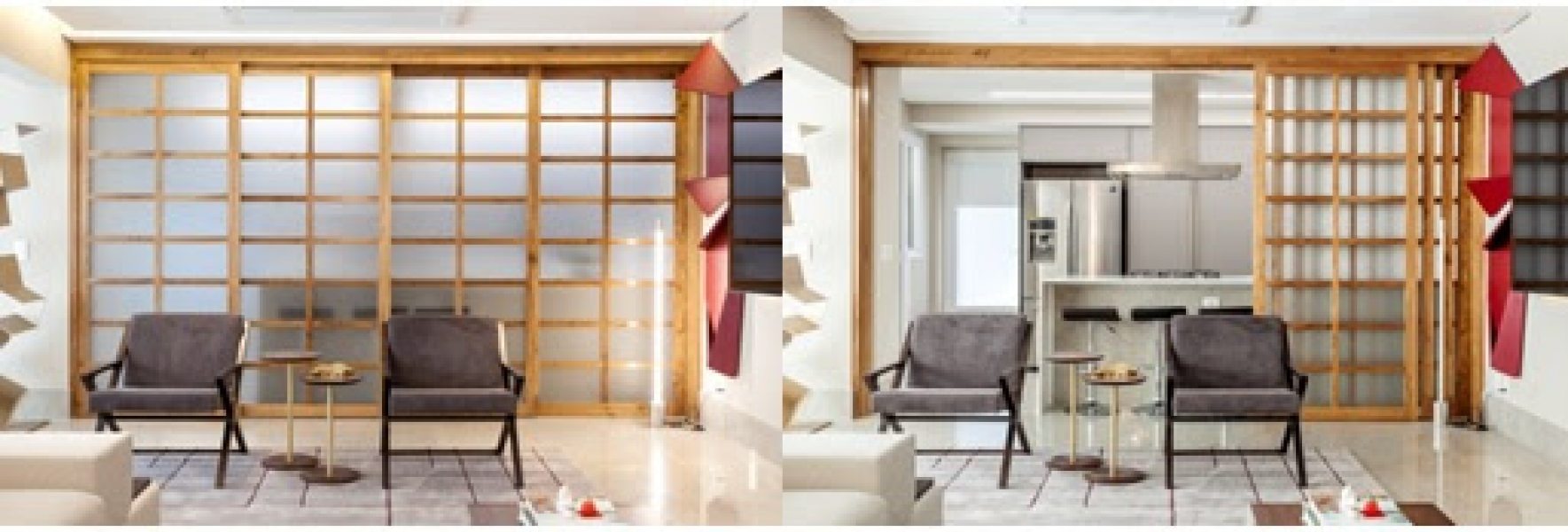 A ‘extinção’ das paredes e a demarcação dos ambientes por meio das características do décor – conhecida como integração –, é uma tendência que veio para ficar na arquitetura de interiores, pois independente do tamanho do projeto, confere amplitude ao imóvel. Nesse conceito, a porta de correr aparece como um componente nessa constituição, já que permite separar um cômodo, conferindo isolamento completo e privacidade, ao mesmo tempo que, com a abertura, promove a inclusão do ambiente.