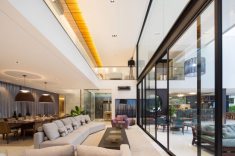 Para acomodar a família foram criadas sete suites - uma máster e duas semi master - todas organizadas para dar privacidade. Dentre as outras amenidades estão incluídas salas de jantar, estar e lareira; home theater, espaço gourmet, piscina, sauna, fireplace e um espaço zen com spa, além de áreas de esportes com academia, quadra esportiva e vestiários.