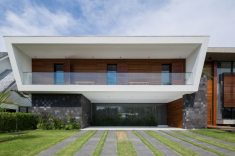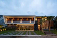 A casa de praia Jukro, localizada no Jardim Acapulco (Guarujá), foi construída em dois pavimentos de concreto armado no litoral de São Paulo. O projeto, assinado pelo escritório Raiz Arquitetura, integra um portfólio de diversas casas de alto padrão no litoral e interior paulista assinadas pelos arquitetos Alexandre Ferraz e Elias Souza. Pensada para manter a vista da mata atlântica no fundo do lote e a vista para Serra do Mar na frente da residência, a residência conta com uma varanda de pé direito duplo nos fundos e, na frente, com um living de pé direito duplo envidraçado e brises externos que equilibram a incidência solar da fachada oeste.