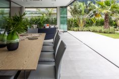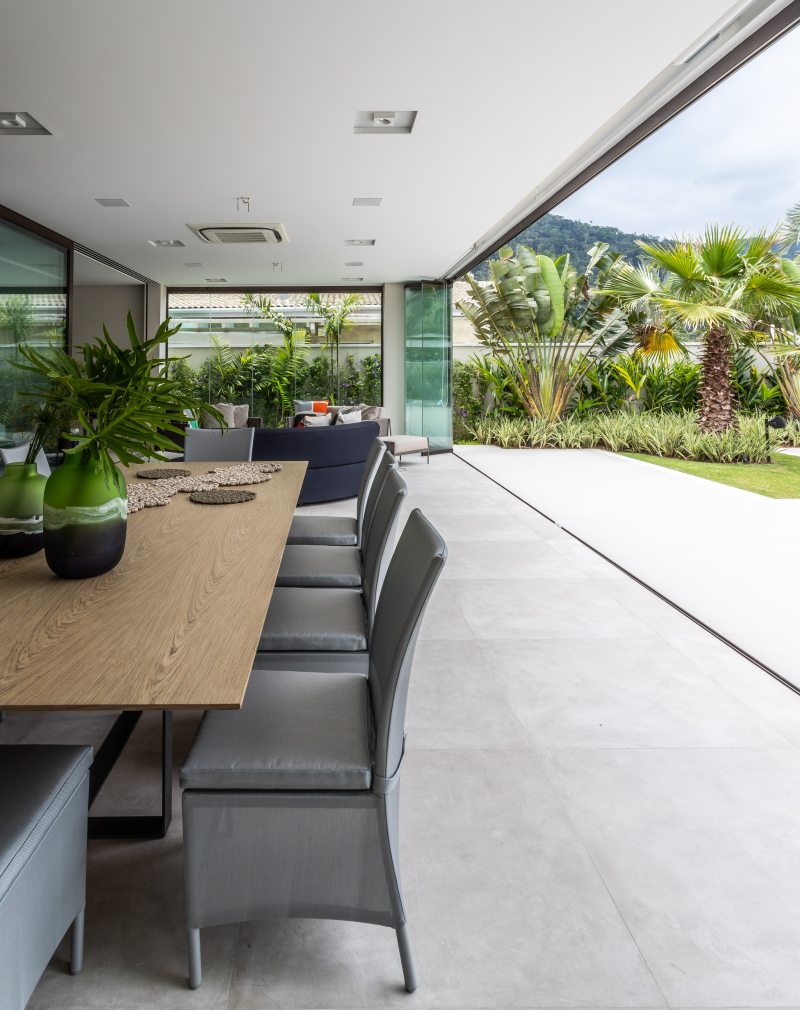A durabilidade dos materiais é uma questão importante a ser considerada, para que a longevidade do projeto seja mantida por mais tempo. Para portas e janelas o alumínio é uma das melhores opções, pois além de ser extremamente resistente a intempéries, pode receber uma grande sorte de acabamentos. No quesito revestimentos, porcelanatos e pedras naturais são ideais, pois possibilitam uma limpeza mais funcional e são bastante duráveis. "Pedras naturais, em geral, demandam alguma atenção quanto à impermeabilização. Por isso, é sempre importante avaliar material X uso, no momento da especificação", adverte Patricia Penna. Para os tecidos resistência, praticidade para limpeza e secagem rápida, são atributos a serem observados.