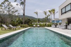 Na área externa piscina, espaço gourmet e área de descanso formam o setor de lazer - todo voltado para o grande jardim, que pode ter um lindo projeto paisagístico. "É imprescindível que haja um bom projeto de paisagismo, pois tem o poder de transformar o exterior da casa e valorizar muito a arquitetura. Além disso, um bom projeto leva em consideração não apenas a proposição de espécies adequadas ao local de implantação, mas também iluminação e irrigação", relata a profissional.