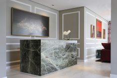 Há 25 anos na cidade catarinense, a imobiliária com foco em produtos de alto padrão sentiu a necessidade de uma nova sede que contemplasse as expectativas de seus clientes. “Fomos procurados pelos proprietários da empresa para criar um projeto plural, que atendesse a um perfil de público com vários estilos - clássico, contemporâneo, eclético e modernista. E que esses perfis fossem explorados para personalidades de alto padrão. Ficamos felizes em entregar um projeto que atendesse a todas essas propostas”, relata o decorador Renan Mutao.