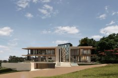 A casa premiada, ainda em construção, está localizada no condomínio fechado de alto padrão Bravíssima Private Residence, em Itajaí (SC), e competiu com projetos assinados por alguns dos melhores profissionais dos Estados Unidos e outros países das Américas. Ao todo, são 1200m² de área construída em um terreno de 3500m² que, por si só, já é bastante desafiador. “Todos os terrenos desse condomínio, localizado nas montanhas de Mata Atlântica preservada e de frente para o mar, têm inclinação acentuada, então, pela própria natureza, já requerem projetos mais ousados”, conta Eliza, que inscreveu o projeto no Property Awards no final do ano passado.