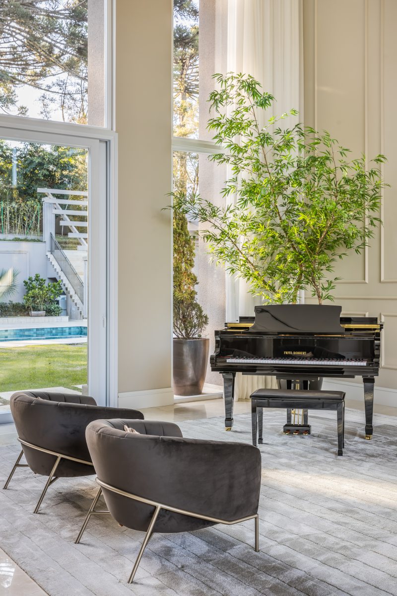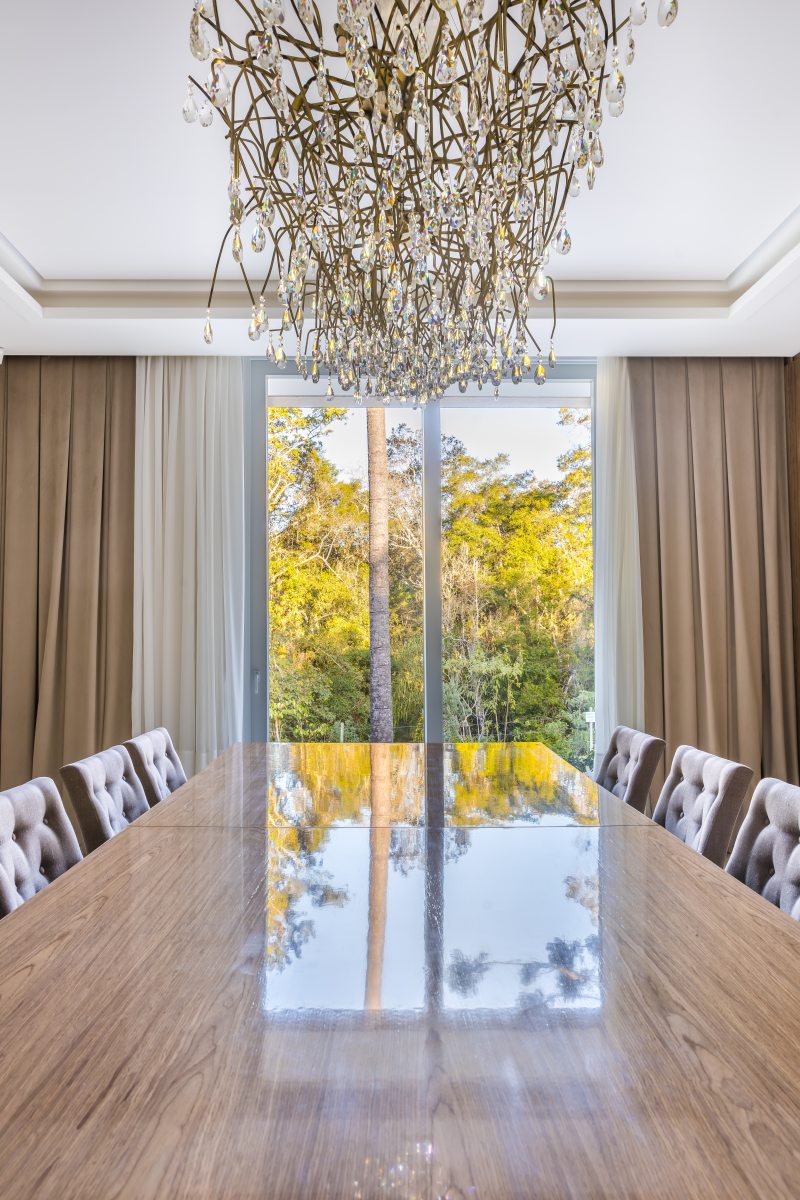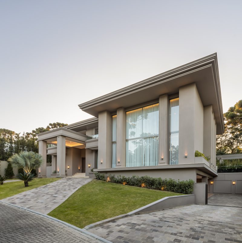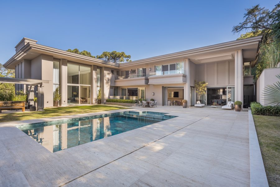 Situada em meio a um terreno em condomínio fechado de 2500m² em Santa Felicidade, em Curitiba, a residência contabiliza impressionantes 1500m² de área construída.