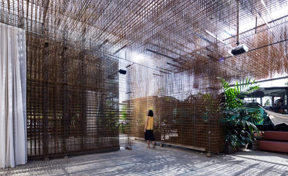 O Pavilhão Nuvem, projeto do coletivo Arquitetos Associados formado pelos arquitetos e urbanistas Alexandre Brasil, André Luiz Prado, Bruno Santa Cecília, Carlos Alberto Maciel e Paula Zasnicoff, surpreendeu o público com sua estrutura inteiramente construída a partir de conjuntos de telas de aço soldadas, evitando a geração de resíduos e perdas na produção.