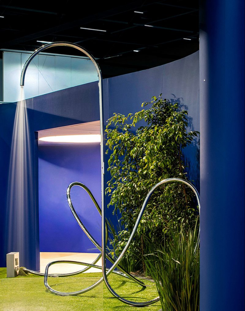 Foi exatamente esse caminho que percorreu uma das propostas mais curiosas apresentadas pela Docol na edição 2025 do evento. Na época, a marca levou para a feira uma ducha externa inspirada na imagem de uma mangueira de jardim solta no quintal — uma peça de desenho livre, quase escultórico, que imediatamente despertou a atenção de arquitetos e designers. A peça foi desenhada pelo arquiteto e designer Alan Chu e apresentada inicialmente como conceito na feira. Após a repercussão do projeto entre arquitetos e designers, a ducha evoluiu para versão comercial e passou a integrar a linha de produtos da Docol.
