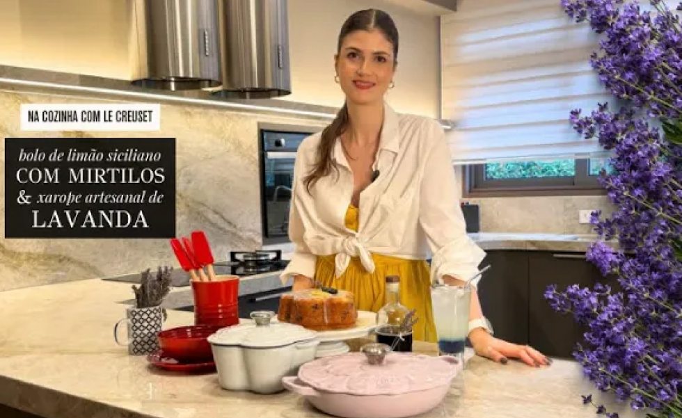 Para dar um toque ainda mais especial, usamos os lançamentos da Le Creuset: a Panela Flor Tradition (na cor Meringue) e a Caçarola Signature Petal (na cor Shallot).