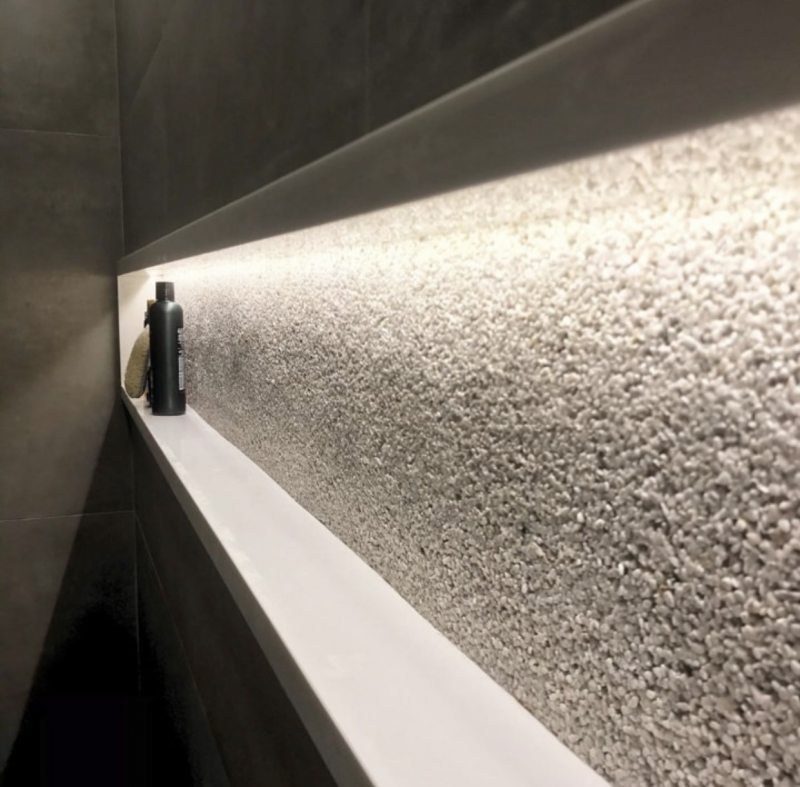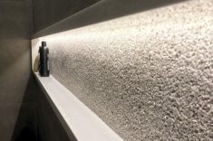 Anota essa ideia se você quer trazer para sua casa uma textura que impacte. Os “microsseixos” são uma composição de resinas e granulados de pedras naturais. Quando misturados com os colantes especiais, podem ser aplicados de forma contínua em superfícies de pisos ou paredes