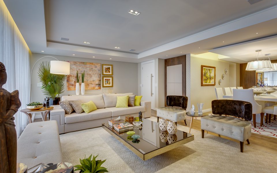 Onde: Curitiba • 27 de Abril - 2018 | Fotos Nenad RadovanovicA repaginação da área social do apartamento trouxe a iluminação como personagem principal