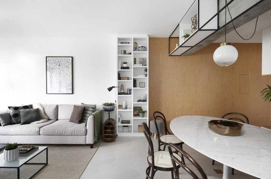 Onde: São Paulo • 02 de Abril - 2019 | Fotos Mariana OrsiCom uma paleta neutra, o apartamento de 95 m² sofreu alterações estruturais, com renovação das partes elétricas e hidráulica