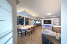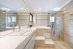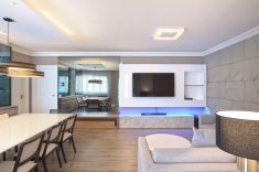 Para a renovação completa do apartamento do casal, a designer de interiores Giselle Ramos criou espaços com peças de design, revestimentos de qualidade, boa iluminação e muito vidro. “O propósito foi utilizar o espaço de forma mais eficiente, priorizando a circulação, o armazenamento adequado de pertences e a segurança do casal maduro”, comenta Giselle.