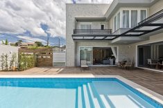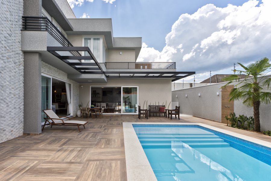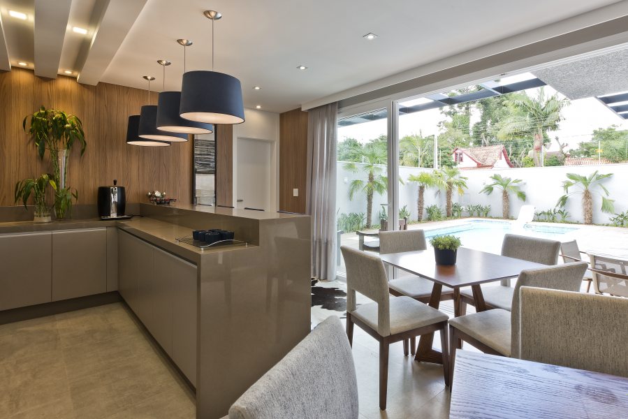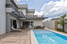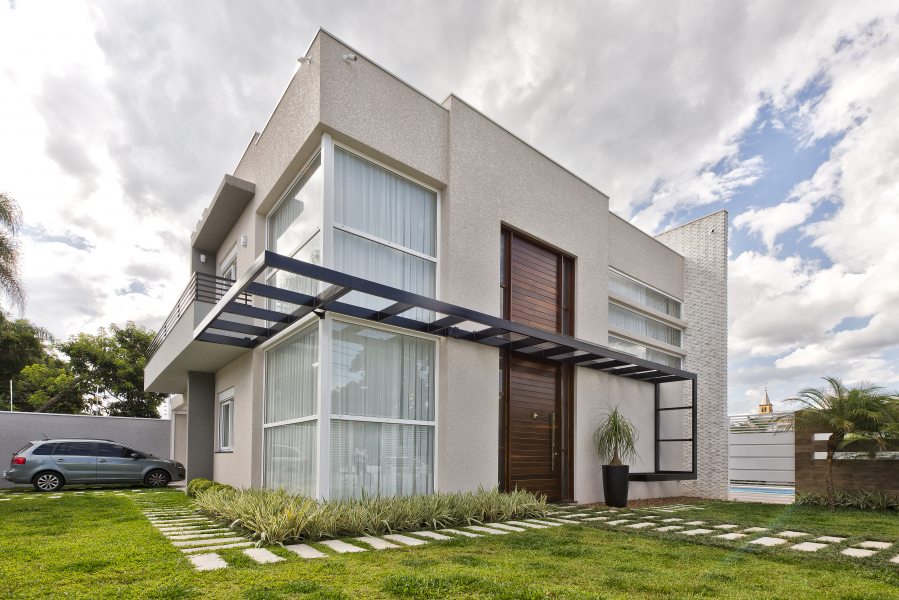 Onde: Curitiba • 28 de Janeiro - 2019 | Fotos Marcelo StammerResidência de 300 m² traz arquitetônico de linhas retas que ocupa pequena parte do terreno para valorizar ainda mais o jardim com piscina