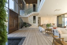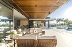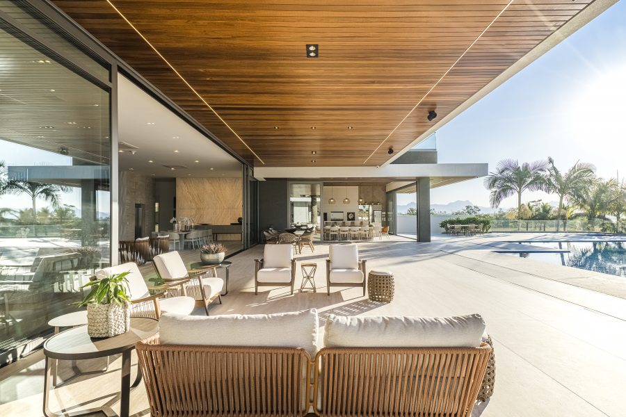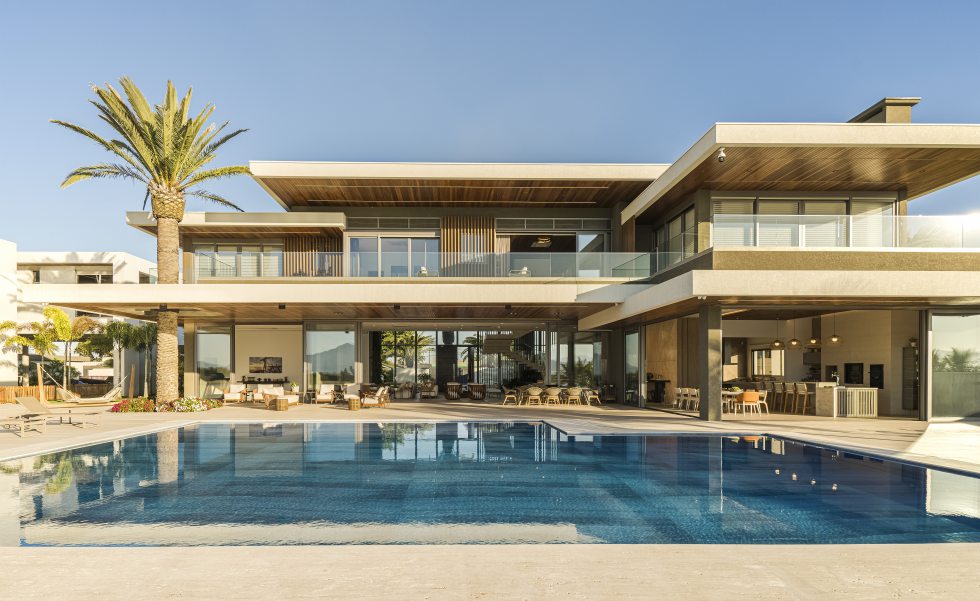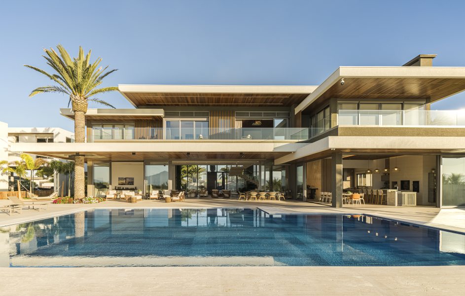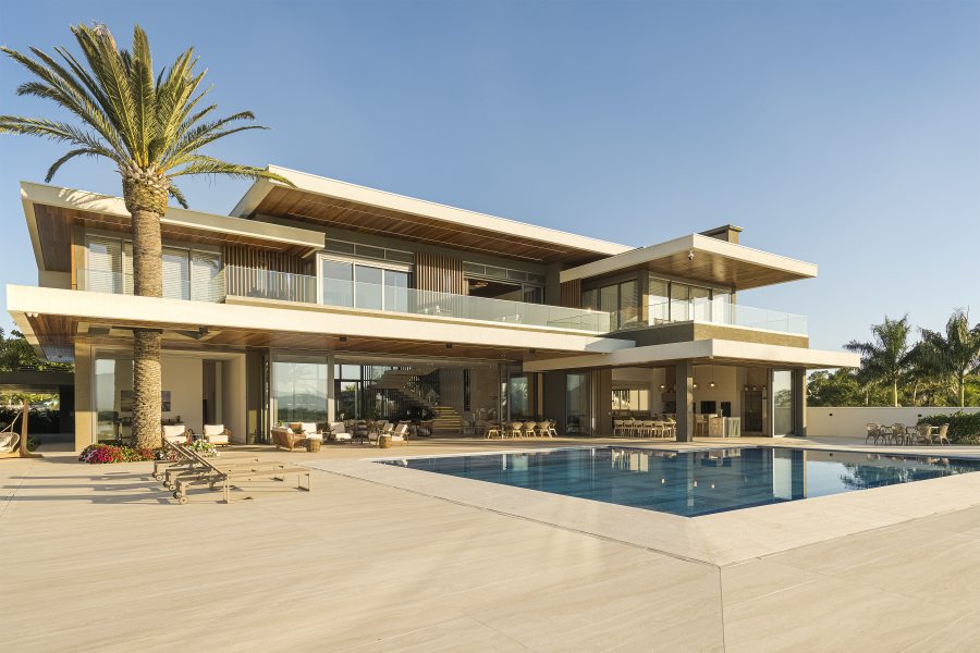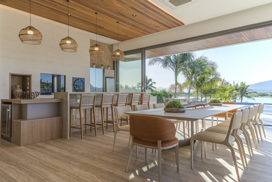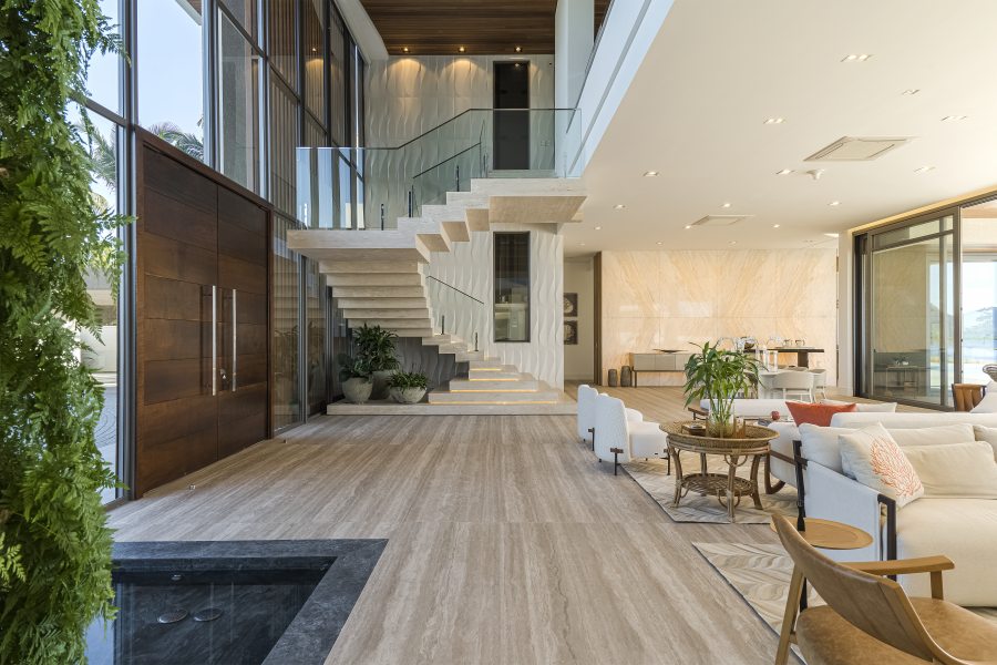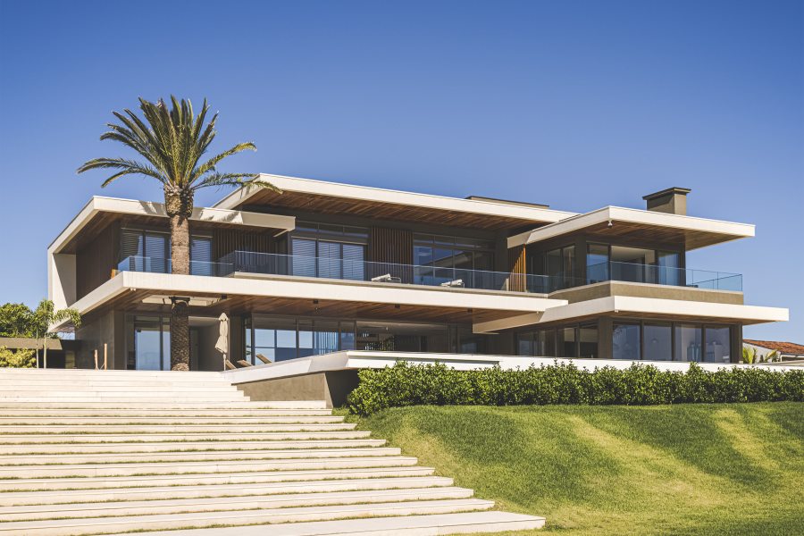 Embora deslumbrante, o resultado final exigiu a superação de alguns obstáculos. Além de atender a um extenso programa de necessidades, a localização à beira-mar exigiu considerações técnicas especiais quanto à durabilidade e adequação de materiais e acabamentos. Outro desafio foi de ordem estrutural: “A escala da residência, que é uma das características mais impactantes do projeto da BSA, trouxe alguns desafios na parte da engenharia para solucionar os grandes vãos e balanços que definiram o caráter da obra. São 1.500m² de área residencial construída, sem considerar áreas externas como varandas, terraços e piscinas descobertas. O time da BSA dedicou muito cuidado e carinho para atender todas às necessidades e ambições do casal e garantir a realização do projeto como idealizado.” – afirmou Manuel Baggio, sócio da Baggio Schiavon.