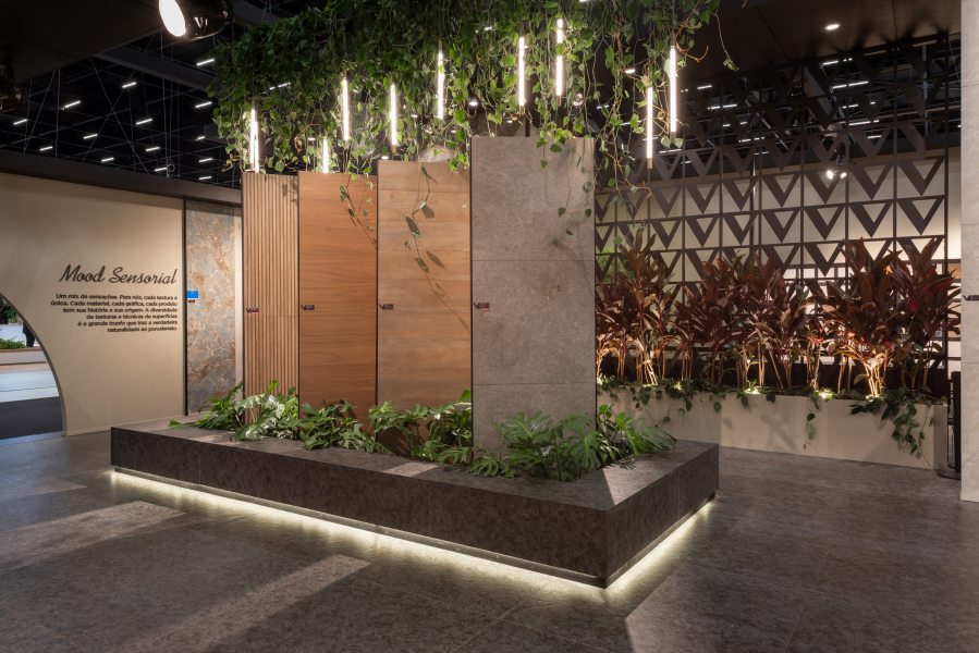 A Portobello participou desta edição da Expo Revestir com um estande de 1400m² criado pelo arquiteto Giovani Bonetti. Tendo a sustentabilidade como ponto de partida, o profissional colaborou com a equipe de arquitetura da Portobello no desenvolvimento de um projeto modular, com estruturas metálicas e revestimentos das paredes que dispensam pintura no local.
