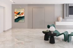 Já a linha Cristallo foi pensada para replicar o quartzo branco com detalhes que proporcionam a sensação de transparência e leveza, enquanto a linha Pulpis remete ao mármore originário da Espanha e possui nuances cromáticas acinzentadas, com veios delicados.
