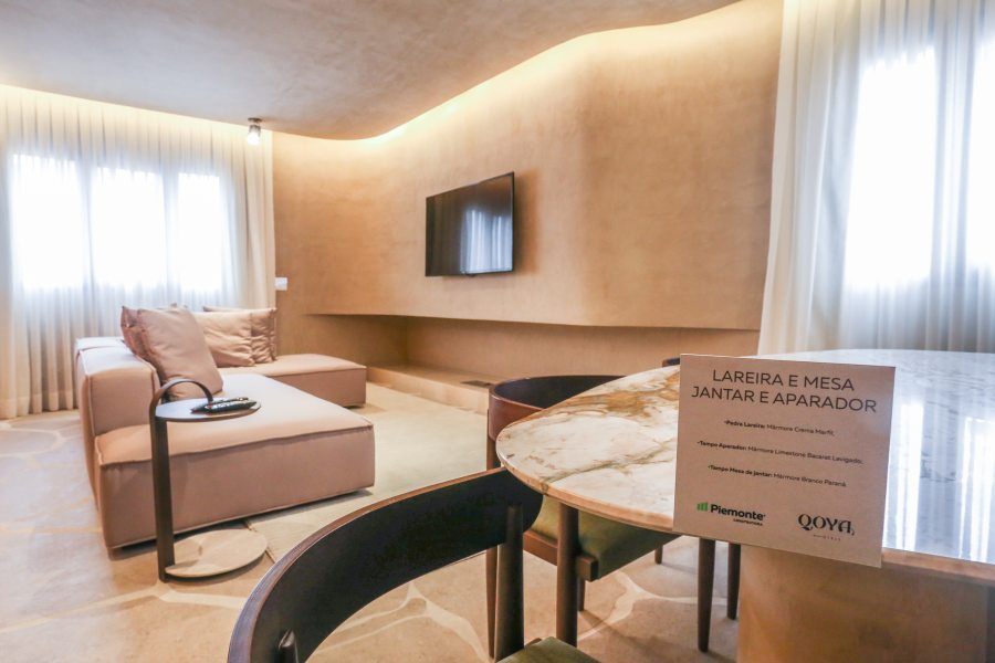 Reinaugurado em abrill de 2022, com identidade totalmente nova, o Hotel QOYA foi totalmente modernizado. "A obra foi executada em 07 meses, sendo que a primeira fase do retrofit, contemplou a demolição, readequação estrutural, acabamentos e decoração de toda a área de lobby, bar, restaurante, centro de eventos e pavimentos de quartos, incluindo a moderna e deslumbrante suíte presidencial", explica Rafael Medeiros, diretor de engenharia da Construtora Piemonte.